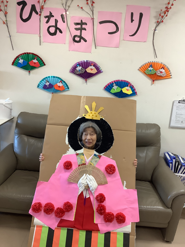 ひな祭りのお祝いでは皆様、お内裏様やお雛様になりきって写真撮影を楽しまれ笑顔あふれる写真がたくさん撮れました。 また歌やゲームのレクリェーションも行い盛りだくさんのひな祭りを楽しんで頂く事が出来ました。